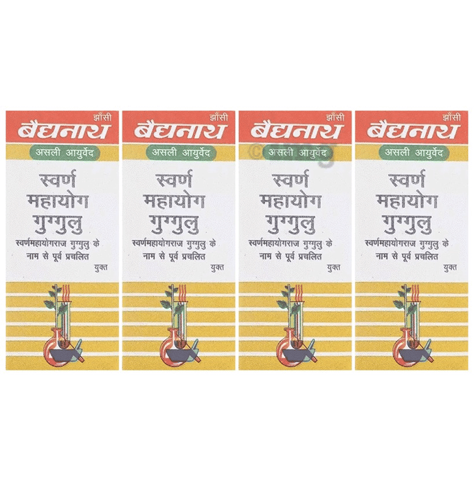 Baidyanath (Jhansi) Swarna Mahayog Guggulu Baidyanath (Jhansi) Swarna Mahayog Guggulu is an ayurvedic guggul preparation used for pain disorders, digestive ailments and breathing troubles. It also helps in reducing stiffness, pain and swelling in joint disorders. It is also used as supportive therapy in Ayurveda for a variety of disorders. It also relaxes muscle soreness and stiffness. Moreover, it may reduce inflammation in the case of arthritis.