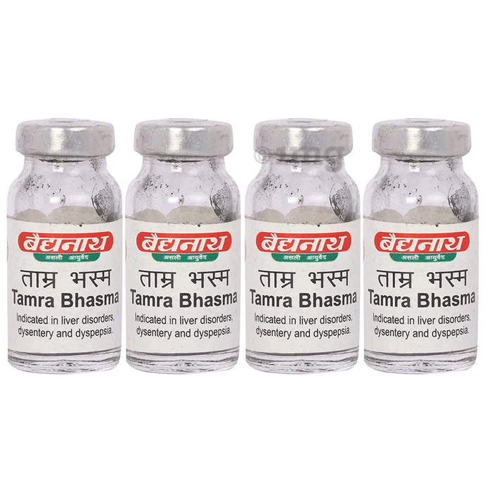 Baidyanath (Jhansi) Tamra Bhasma (5gm Each) is an ayurvedic medicine that is made using copper. It may help in liver diseases, skin diseases, weight management, abdominal distention.