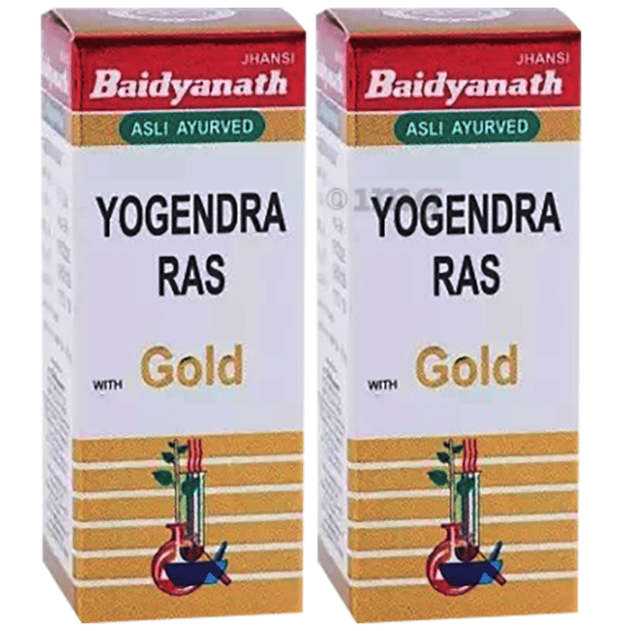 Baidyanath (Jhansi) Yogendra Ras with Gold is an ayurvedic medicine that can be used to deal with a wide variety of ailments. It can be helpful in coping with vata-vikar, prameha (urinary disorders), heart diseases (weakness of heart, high BP) and nerve disorders. It can also help to overcome weakness after illness. Moreover, it can be beneficial in dealing with physical and mental weakness associated with stress, tension, or anxiety. Yogendra Ras is swarna-kalpa which are those Ayurvedic medicines which contain swarn Bhasma. Swarna bhasma is good for memory, the brain and the whole body. It is a nutritive, anti-paralytic and cardiac tonic that can improve memory and it can deal with various diseases of the heart and brain.