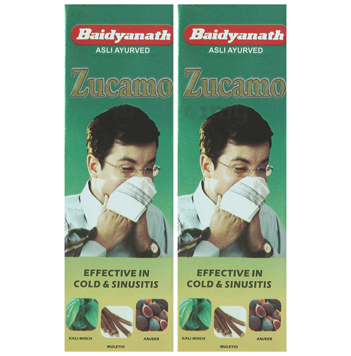 Baidyanath (Jhansi) Zucamo Syrup (100ml Each) is a syrup that provides relief from cold, cough, flu and fever. This ayurvedic formulation may be effective in case of runny nose and other symptoms of flu. It can be soothing and relaxing during a cold and cough. It also helps in relaxing sore throats by providing warmth.
