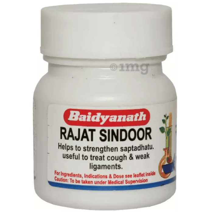 Baidyanath (Nagpur) Rajat Sindoor is an ayurvedic formulation of inorganic origin. It is a kupipakwa rasayana containing mercury, sulphur and silver. It can improve the strength of the body and can help manage the weakness of the heart and brain. This medicine must be taken under medical supervision only.