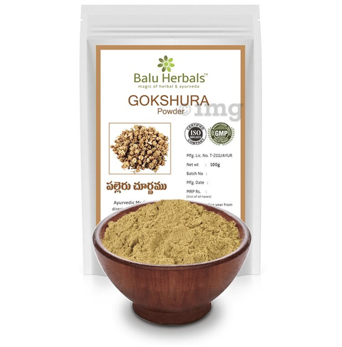 Balu Herbals Gokshura Powder is a herbal formulation for genitourinary disorders. Gokshura is a cooling and nourishing herb that helps soothe the membranes of the urinary tract and promote normal urine flow