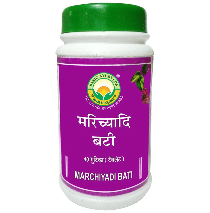 Basic Ayurveda Marchiyadi Bati is an Ayurvedic product. It is helpful for respiratory-related problems. Marichyadi Bati is a very famous medicine for cough. It is beneficial for hoarseness, sore throat, cold and cough.