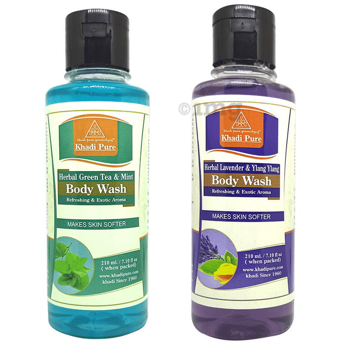 Information about Khadi Pure Combo Pack of Herbal Green Tea & Mint Body Wash &Herbal Lavender & Ylang Ylang Body Wash (210ml Each)