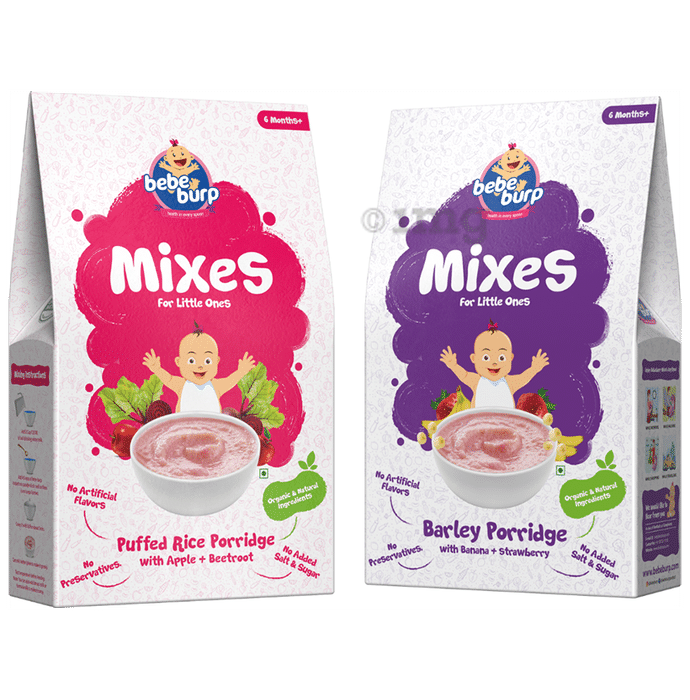Bebe Burp Combo Pack of 6M+ Mixes Puffed Rice Porridge and 6M+ Mixes Barley Porridge