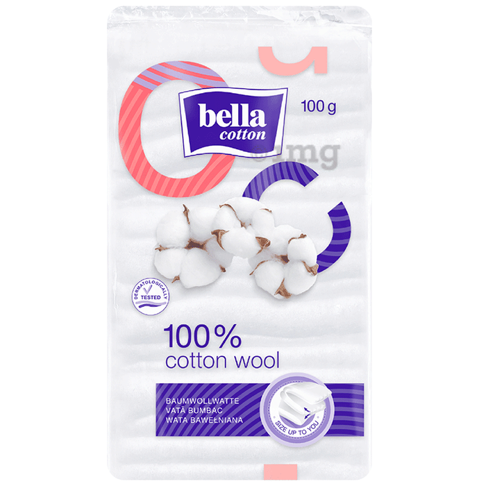 Bella Cotton Wool 100 Gms offers premium quality Bella Cotton Wool made of 100 percent clean, soft and natural cotton fibres to ensure superior absorption and safety. It is dermatologically tested and gently cleans the skin.It helps in maintaining personal hygiene.