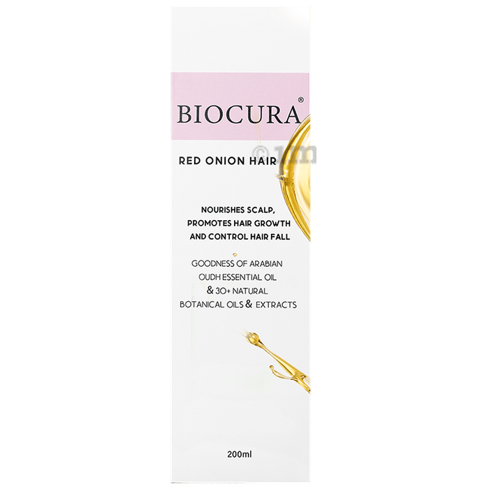 Biocura Red Onion Hair Oil promotes hair growth, controls greying, manages dandruff, gives your hair a lustrous look, avoids split ends, and revives dull, damaged, and unhealthy hair. Infused with the astounding properties of red onion and ashwagandha, its nutritive formula reaches deep into the hair roots to strengthen the strands, reducing hair loss and enhancing hair quality.