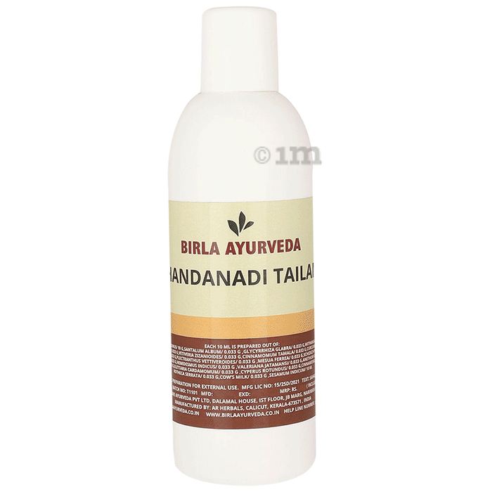 Birla Ayurveda Chаndаnааdi Thаilаm is a liquid Ayurvedic oil formulation that works as a natural coolant. It can be used for the head or the entire body to provide relief from headaches, stress and dizziness. It also effectively provides relief from burning sensations, irritated nerves, insomnia and other mental health-related problems. Made using natural ingredients, it is beneficial for health and is safe to use.