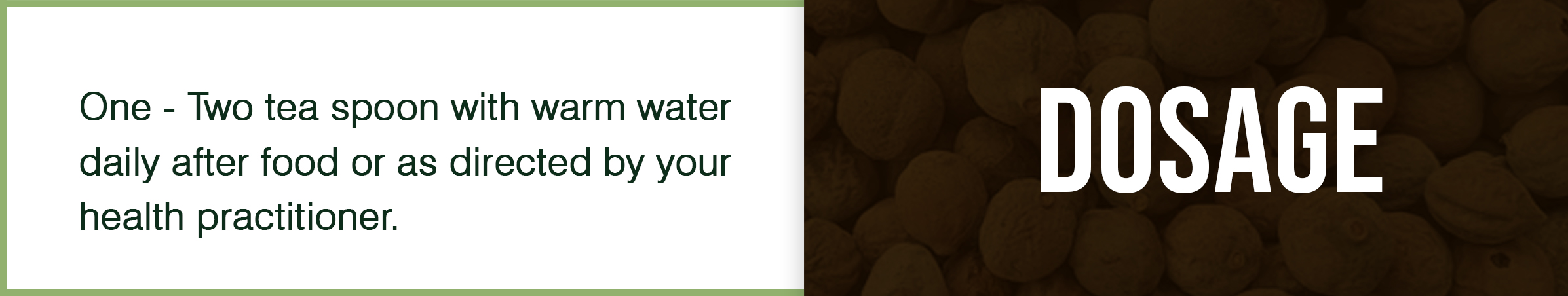 Take ½ -2 tsp at night with ½ glass buttermilk and add 2-3 pinch salt (black salt) in it.