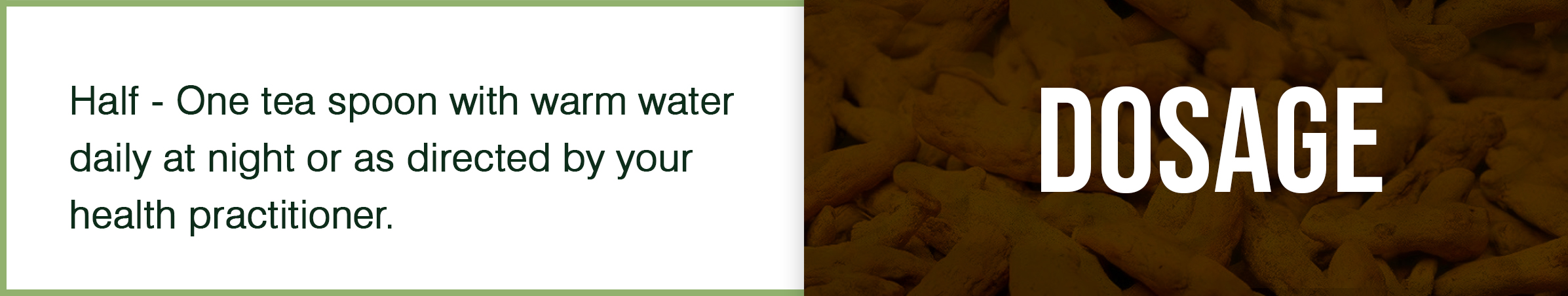- In adults, 1 to1.5 tsp daily intake with warm milk or honey-warm water, supports protections from recurrent urinary infections, skin infections and balances irregular high blood glucose levels