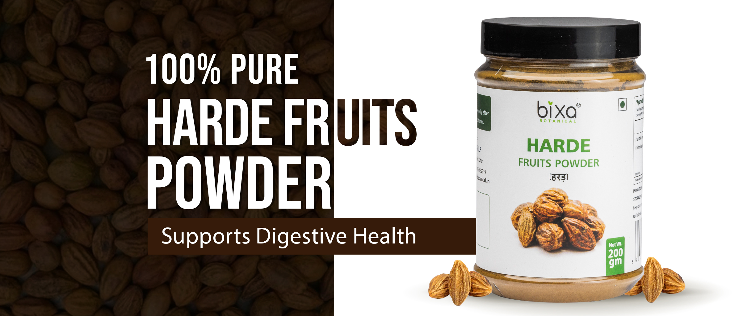 Harde or Terminalia Chebula helps remove toxins and undigested materials from body as mild laxative and helps in digestion. Harde fruit Powder supports general health gain, well being of eyes, brain, throat, intestine, skin, liver, spleen and urinary tract. It helps to promote anti-oxidant properties, prevention of tissue damage & to increase energy levels.