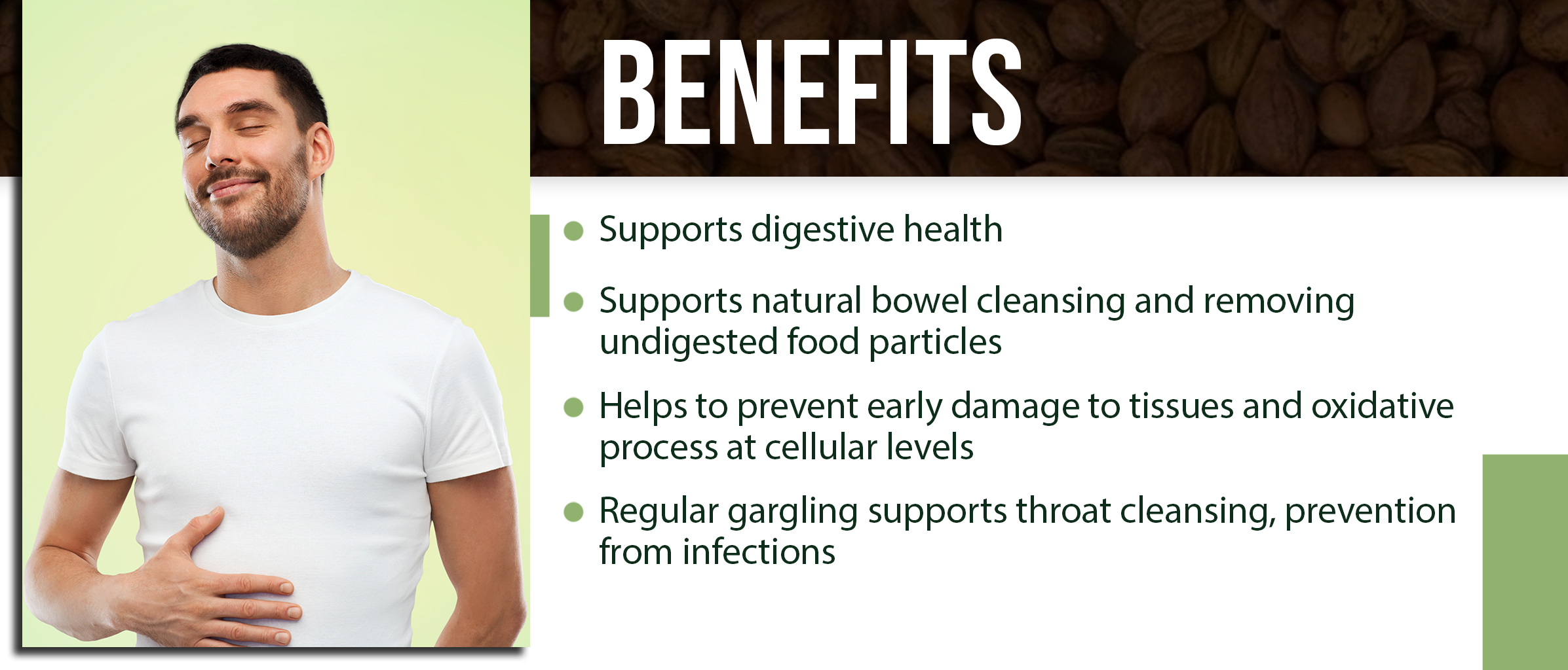 It is among the important three fruits used in “Triphala” (Three Myrobalans), an ayurvedic generic medicine known worldwide for its health benefits. As per ayurvedic texts, it has Tridosha’s viz Vata, Pitta and kapha pacifying properties and supports as Ayurvedic herbal tonic with multiple health benefits.
