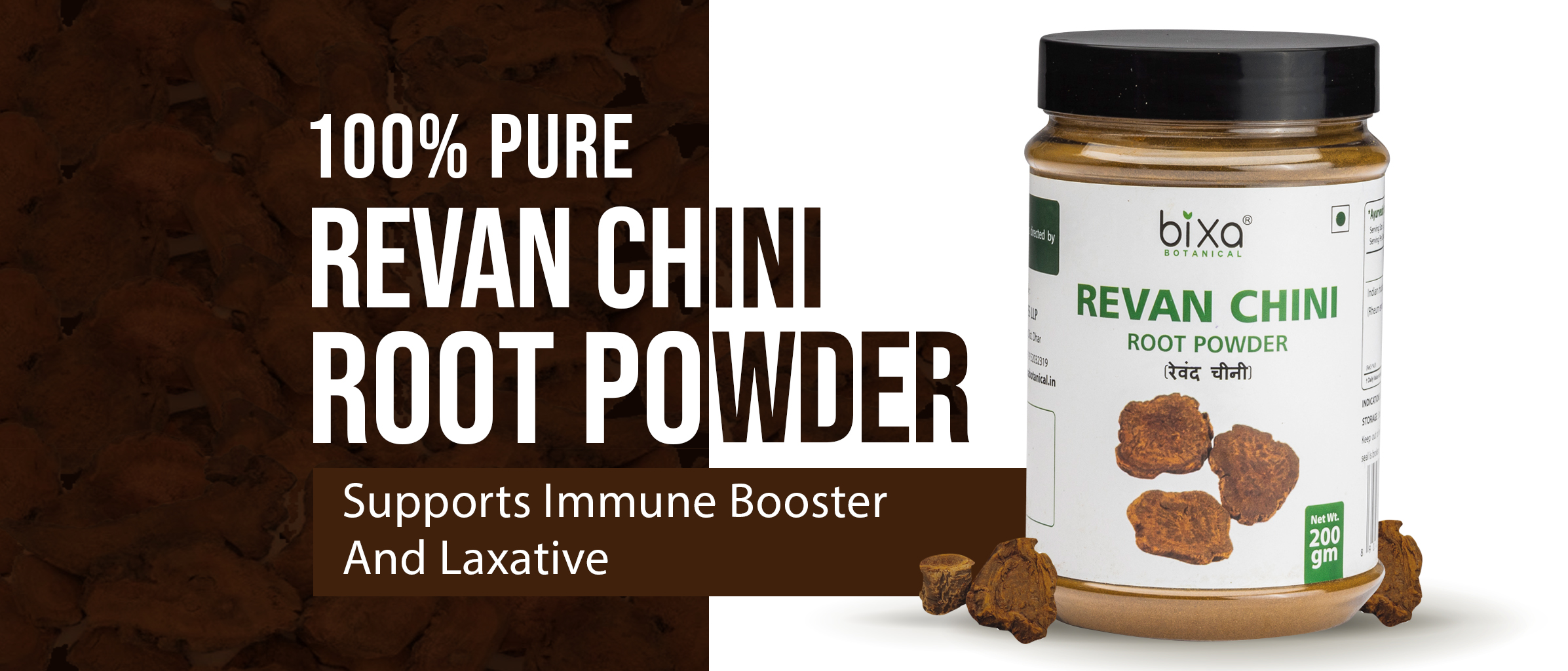 Bixa Botanical Revan Chini Powder contains Revand chini or Himalayan rhubarb or Indian rhubarb is a stout herb, endemic to the Himalayan region distributed in the temperate and subtropical region from Kashmir to Sikkim at an elevation of 2800-3000 meters in India.
