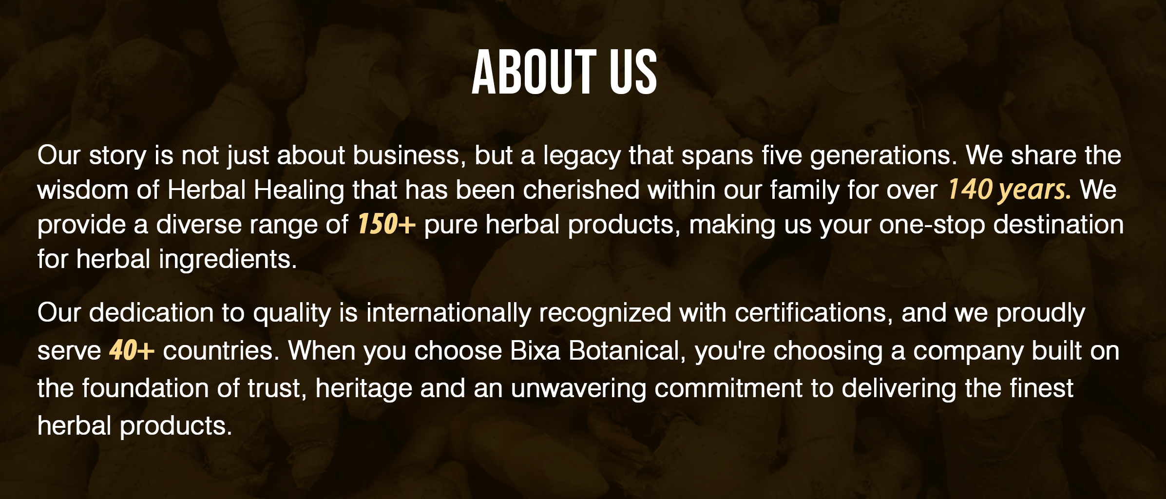 Bixa Botanical Sunth Powder is formulated with Ginger/ Zingiber or Suntha [Botanical Name - Zingiber officinale] and is an important herb/spice in Indian families largely cultivated in warm, moist regions chiefly in Madras, Cochin and Travancore.