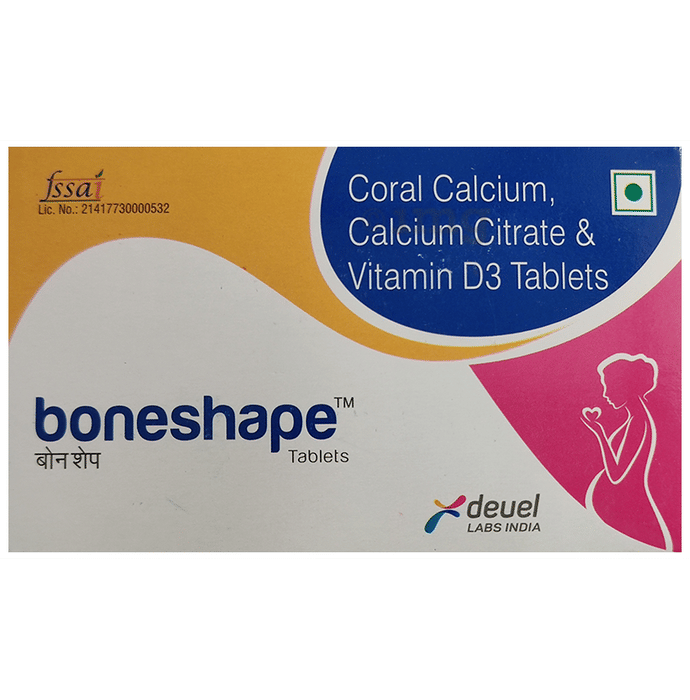Boneshape Tablet is a dietary supplement with Calcium Citrate, a highly absorbable form of calcium that helps maintain calcium levels in the body. It is enriched with Coral Calcium, a supplement usually derived from coral sand deposits. This supplement also contains Vitamin D3 which helps enhance calcium absorption.