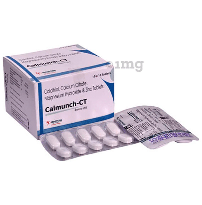 Calmunch CT Tablet is a multivitamin and multimineral nutritional supplement. It supplies the body with critical vitamins that help in the overall body functions. The tablet is beneficial in strengthening the bones.