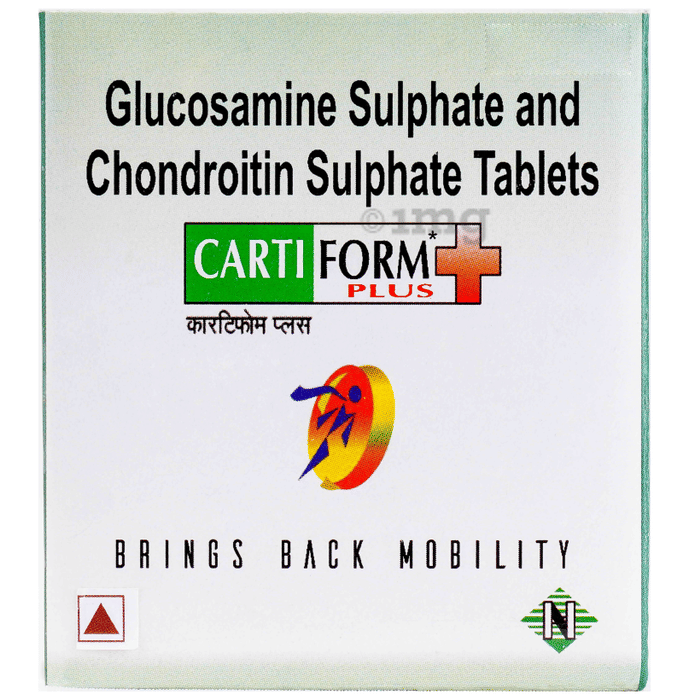 Cartiform Plus Tablet is a dietary supplement that helps in maintaining health providing lubrication and shock absorption. Chondroitin sulfate is a natural component of cartilage and is believed to stimulate the production of new cartilage. Glucosamine is an amino sugar that acts as a building block for cartilage, tendons, and ligaments and is thought to reduce inflammation, improve mobility, and decrease pain associated with osteoarthritis.