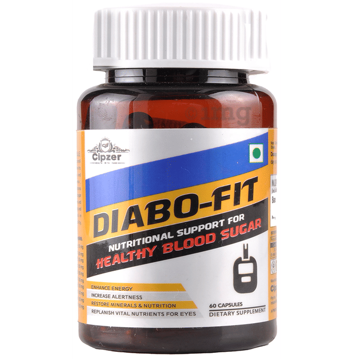 Cipzer Diabofit Capsule controls abnormally high blood glucose levels, stimulates insulin secretion, eliminates the risk of hyperglycemia and prevents all other compilations caused by high blood sugar. It increases glucose tolerance level, maintains energy level in the body and regularises metabolism. The capsule is useful in hyperglycemia, general debility, dyspepsia, polyurea and neuritis.