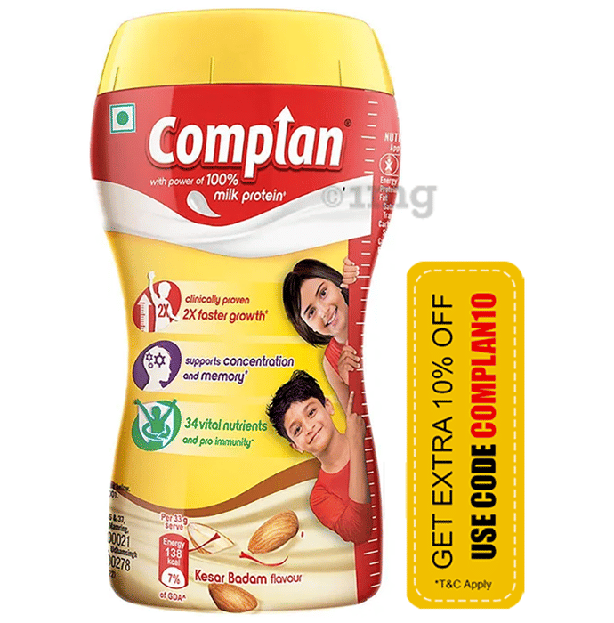 - Kesar badam flavour: Complan kesar badam flavour, a ‘dairy-based beverage mix’, is a delicious drink that the kid will enjoy. It supports healthy growth