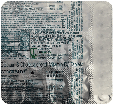 Corcium D3 Tablet is a dietary supplement with calcium and cholecalciferol that helps prevent low calcium levels in the blood. It supports muscle and bone health