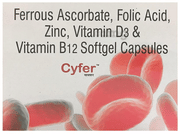 Cyfer Soft Gelatin Capsule is a Vitamin B12 supplement which is used for patients with iron deficiencies. It is useful in treating various types of anaemias associated with a lack of nutrition, pregnancy, or infancy. Other ailments where this tablet is recommended include folic acid deficiency, neuropathies, prophylaxis, and psychiatric disorders.