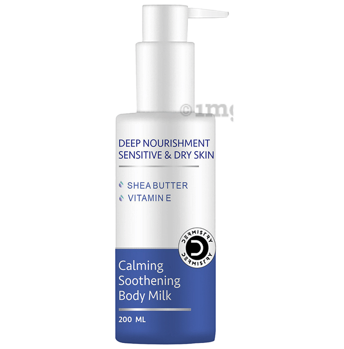 Dermistry Calming Soothening Body Milk Lotion provides deep nourishment for sensitive and dry skin. This moisturizer is a blend of ingredients that help to hydrate even the driest of skin. It helps soften the skin and provide a glow.