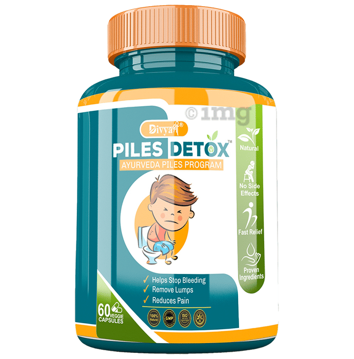 Divya Shree Piles Detox Veggie Capsule is a fast-acting formula made from various valuable herbs for piles patients. It contains analgesic and anaesthetic properties that help in relieving pain and pricking. They help in relieving the burning sensation. Hemostatic and antiseptic properties help in reducing bleeding and promote wound healing. Anti-inflammatory properties help in relieving swelling.