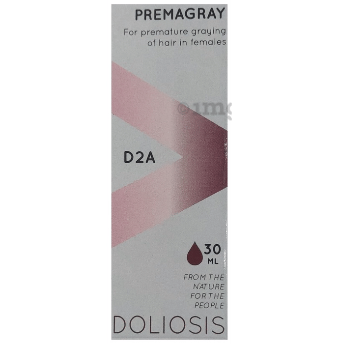 Doliosis D2A Premagray Drop is a homoeopathic preparation formulated to support general hair health, particularly in relation to concerns of premature greying in women. This product contains a blend of homoeopathic ingredients such as Ferrum Phosphoricum, Echinacea, Natrum Muriaticum, and Calcarea Phosphoricum, which are traditionally used in homoeopathy to support overall wellness. Premagray is made with an alcohol base for quick absorption and ease of use, offering a natural approach in line with homoeopathic principles.