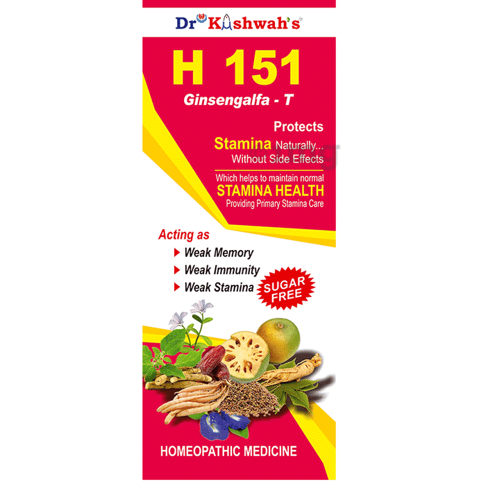 Dr Kushwah's H 151 Ginsengalfa-T Sugar Free is a homoeopathic solution helpful for dealing with weak memory, immunity and stamina. It helps to maintain normal stamina and health.