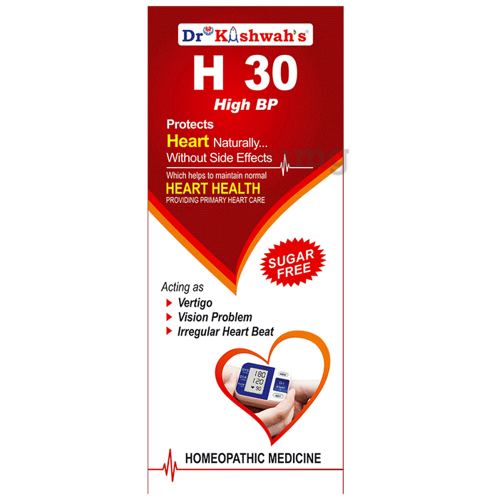 Dr Kushwah's H 30 High BP Sugar Free is a homoeopathic product that helps to maintain heart health. It is beneficial for vertigo, vision problem and irregular heartbeat.