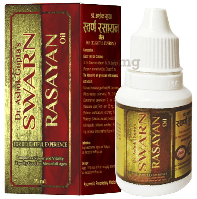 Dr. Ashok Gupta's Swarn Rasayan Oil is an ayurvedic preparation containing rejuvenators and herbs to help restore and preserve the health of young and elderly males. It does not produce any harmful side effects.