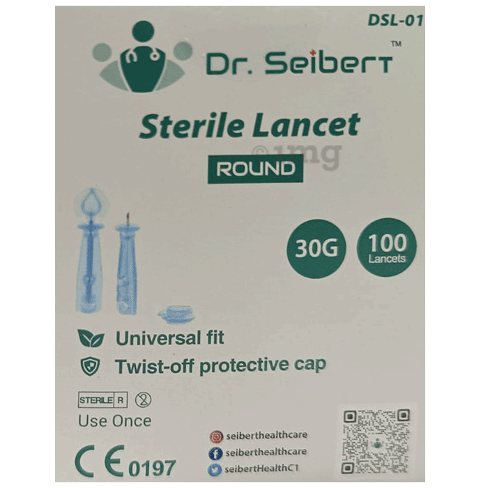 Dr. Seibert DSL-01 Sterile Lancets Round comes with a universal design that easily fits into all lancing devices. The fine gauge provides virtually painless sampling. Dr. Seibert DSL-01 Sterile Lancet come in an enclosed, sealed, protected bag. The lancet needle is carefully crafted with medical-grade material. Dr. Seibert DSL-01 Sterile Lancet is indicated for precise and comfortable procedures.