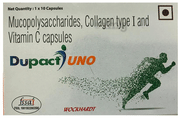 Dupact Uno Capsule contains collagen peptides, mucopolysaccharides and vitamin C as active ingredients. Dupact Uno maintains the structural integrity of the lubrication and spacing of collagen fibre. Thus, Dupact Uno accelerates the tendon healing process.