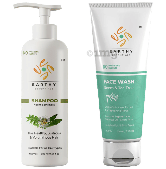 Earthy Essentials Combo Pack of Neem & Bhringraj Shampoo & Neem & Tea Tree Face Wash 100ml