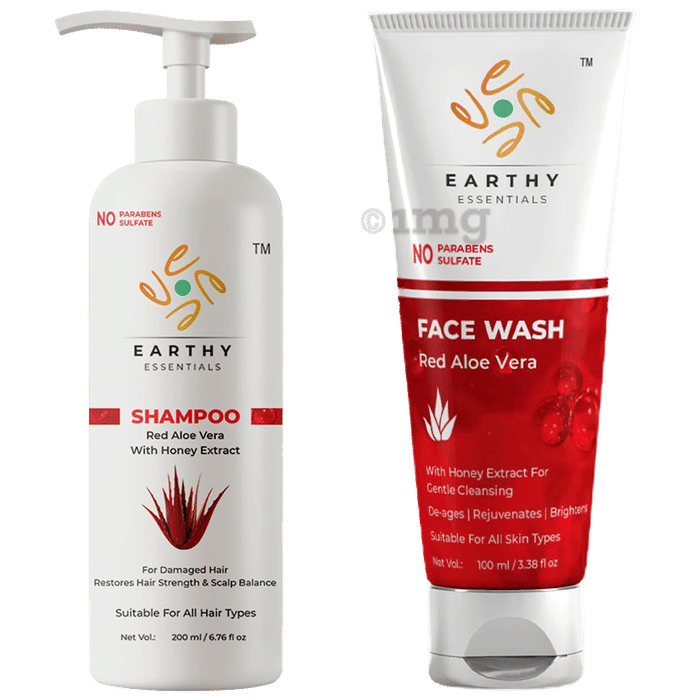 Earthy Essentials Combo Pack of Red Aloe Vera Shampoo 200ml & Red Aloe Vera Face Wash 100ml