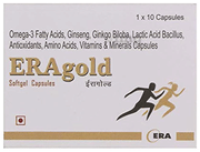Eragold Soft Gelatin Capsule is a dietary supplement with omega 3 fatty acids, ginseng, ginkgo biloba, lactic acid bacillus, antioxidants, amino acids, essential vitamins and minerals. It is an excellent source of various nutrients which help in improving bone health, supports red blood cells formation, manages ailments associated with anaemia, maintains nervous system health, improves brain and heart health, supports gut health and improves overall immunity and well-being.