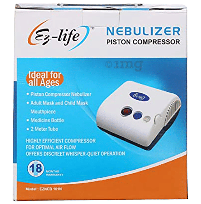 Ez-Life Nebulizer Piston Compressor is a nebulising device with a mouthpiece and child and adult mask. It has a highly efficient compressor for optimal airflow. It offers a discreet, whisper-quiet operation.