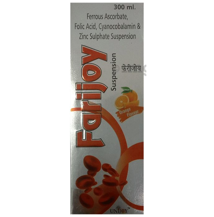 Farijoy Oral Suspension Orange helps in dealing with iron deficiency anaemia. Ferrous ascorbate is a pure form of iron supplement. Thereby higher absorption improves the hemoglobin levels. Zinc helps improve immunity and supports fetal growth. Folic acid helps to maintain the new body cells and support the haemoglobin increase.