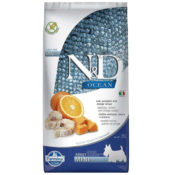 A licensed vendor partner from your nearest location will deliver Farmina Pet Foods N&D Ocean Codfish, Pumpkin and Orange Grain Free Dog Food (Adult Mini). Once the pharmacy accepts your order, the details of the pharmacy will be shared with you.