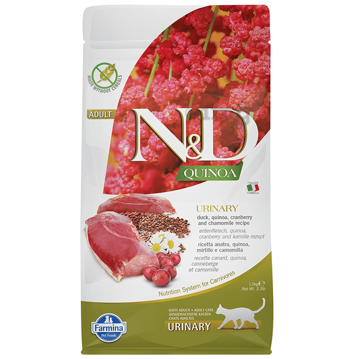 Farmina Pet Foods NandD Quinoa for Adult Cat Urinaryis a functional super-food, and plant extracts with significant nutritional properties that are useful in restoring the health of pets.