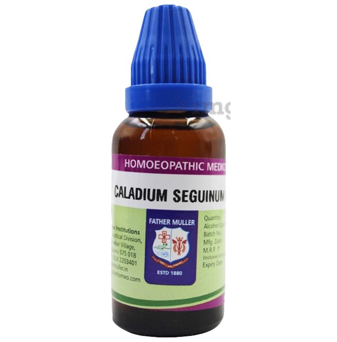 Father Muller Caladium Seguinum Drop is a homoeopathic remedy which shows marked action on the genital organs of males and females. It is very helpful in reducing itching in the genital areas during pregnancy. Also reduces itching due to insect bites. Lung disorders such as breathing difficulties due to asthma and tuberculosis are also managed using this medicine.