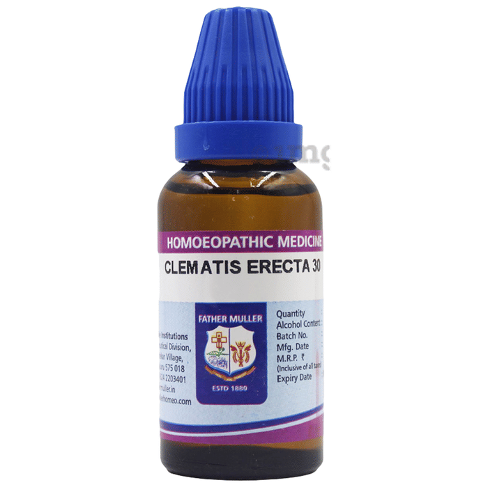 Father Muller Clematis Erecta Drop is an effective homoeopathic remedy which is used for the management of multiple health conditions. It is a potent remedy for the management of skin disorders and promotes faster soothing of bruises through an injury. It is strongly indicated in inflammation of glands and genito-urinary organs. It has diuretic properties and is useful in the management of fluid retention neuralgia and rheumatic pains.