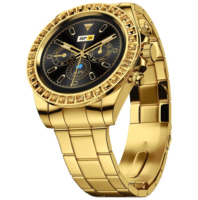 Fire-Boltt Blizzard Ultra Smartwatch features a 1.28" HD round display, Bluetooth calling, stainless steel design, 120 sports modes, voice assistant, inbuilt games and more. It is a gemstone affair, embodying unparalleled luxury. This exquisite smartwatch is a stunning masterpiece adorned with meticulously selected precious stones. Every glance at its captivating design reveals a harmonious fusion of timeless elegance and intelligent functionality, elevating your wrist to a realm of opulence and sophistication.
