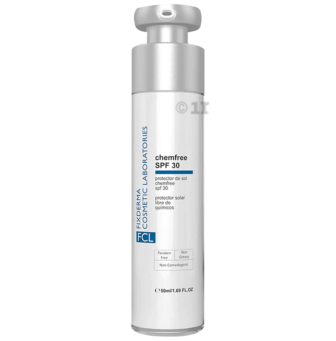 Fixderma Chemfree SPF 30 Lotion comes in a weightless fluid form in SPF 30 that provides broad spectrum UVA and UVB protection by blocking them. It helps prevent skin damage caused due to the harmful rays.