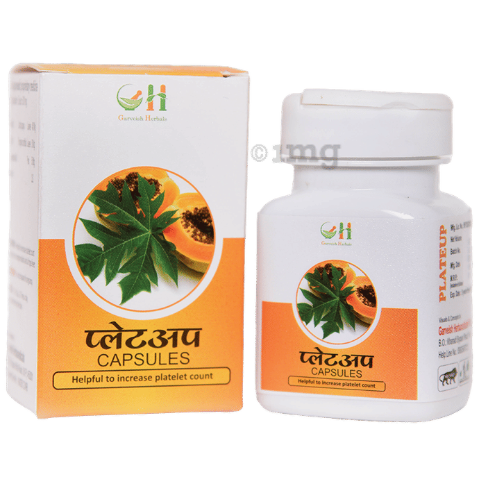 Garveish Plate Up Capsule is helpful to increase platelet count and helps to manage dengue malaria and all types of fever. It includes the benefits of papita and giloy extract.