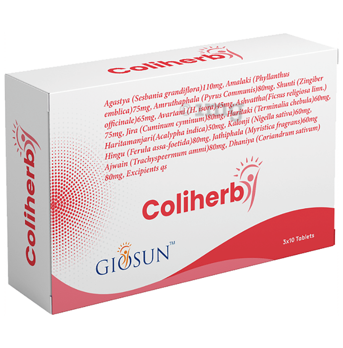 Giosun Coliherb Tablet helps relieve colic pain, stomach ache and spasmodic pain. It contains ingredients like agastya, amalaki, amruthaphala, shunthi, jira and haritaki.