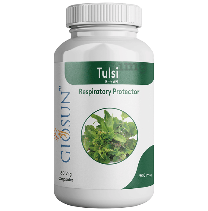 Giosun Tulsi 500mg Veg Capsule is an ayurvedic formula that helps control asthma and relieves sore throat and bronchitis.