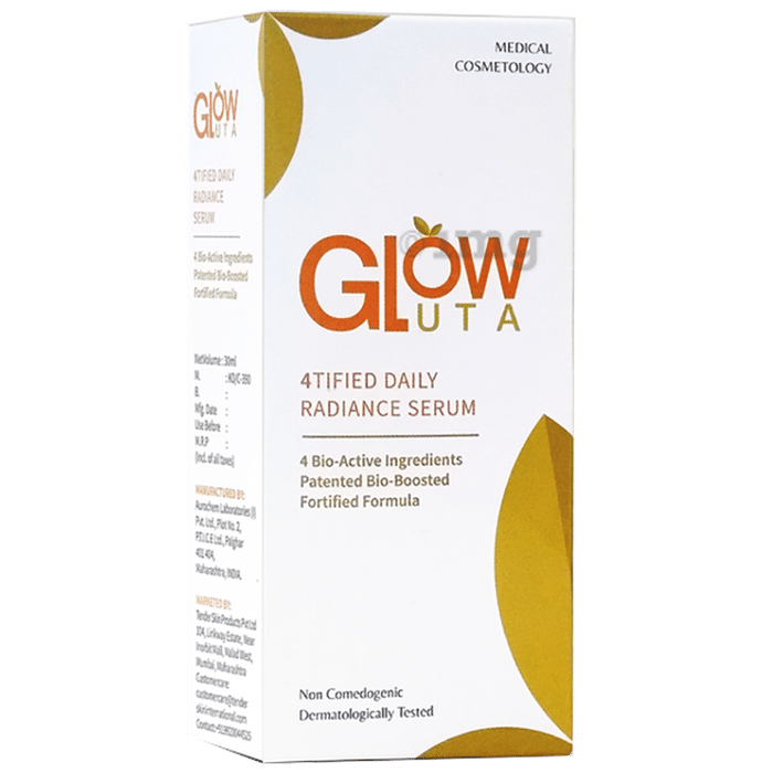 Glow Gluta 4Tified Daily Radiance Serum concentrates in reducing pigmentation and uneven skin tone. A very lightweight serum that absorbs quickly into the skin. 4 BioActive advanced skin lightening agents help in lightening melasma, acne induced hyperpigmentation, marks, uneven skin tone and a dull complexion, giving you velvety soft, spotless and glowing skin.