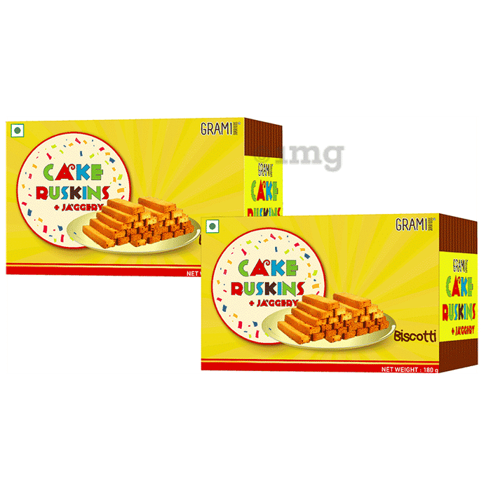 Grami Superfoods Cake Ruskins is made with organic ingredients and has a light and airy texture that melts in the mouth with each bite. It is made with organic whole wheat flour, jaggery, edible vegetable oil, nuts, spices and condiments, essence, and vinegar. This pack comprises the nutritional benefits of whole wheat flour with other ingredients. It contains no added preservatives, artificial colours, or flavours.