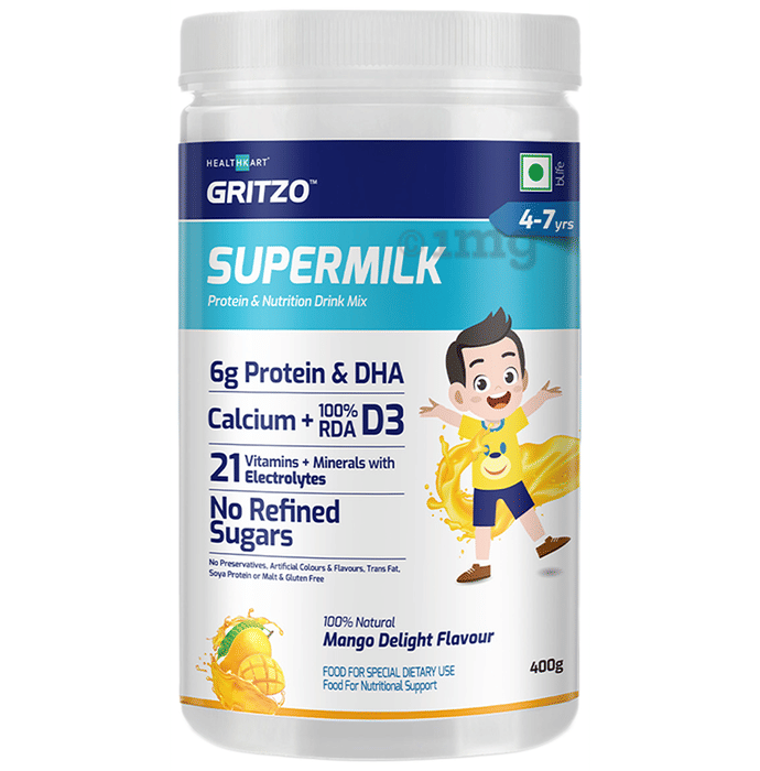 A licensed vendor partner from your nearest location will deliver Gritzo Supermilk 4-7 Years Mango Delight. Once the pharmacy accepts your order, the details of the pharmacy will be shared with you.